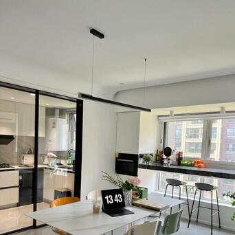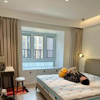 #欧派安家节# 听我一句劝,任何户型这样装都显大 不仅显大,也很好打理! 我家建筑面积127平,套内110平 四室两厅两卫 没有舍弃任一房间,装了自己梦想的电竞房 还做到了“显大显亮实用”,主要是做了以下几点巧思: . 阳台打通 封落地窗 我家客厅只有14.5平,打通了阳台,瞬间多出阳台10.5平面积,客厅更显大了,封了落地窗可以防水隔热保温,大玻璃让阳台更通透,采光和视野更好; . 全屋瓷砖通铺 同色美缝剂 全屋都是瓷砖,防水、耐磨、(铺地暖)导热性好、走路声音小; 客厅、餐厅、厨房、阳台都是用的1200*600大规格浅灰色亮面砖通铺,无过门石、无波导线,用蕞接近的颜色美缝,地面整个连贯,视觉上更显大; . 全屋大白墙 白色是天然反光板股票配资是合法的吗,白色乳胶漆会显得家里很亮堂,经典耐看,不要说不耐脏,无论什么颜色乳胶漆,乱涂乱画也一样会脏,自己家里都会爱护着的; . 全屋门洞加高 极窄踢脚线 我家铺了地暖,地面抬高了8cm,客厅层高只有2.52m了,走廊低至2.3m,还好拆改阶段把门洞统一打到了2.27m,再搭配4cm极窄踢脚线,这样显层高绝绝子; . 硬装颜色不要超过3种 这里说的是大面积的颜色,白色简单耐看显亮堂,地砖浅灰色大气又耐脏,搭配一些黑色或深木色,这些作为基础,其他颜色搭配交给软装,即使后期不喜欢也很方便换; . 厨房做隐藏式吊轨移门 移门打开厨房就变成开放式厨房,关闭就是封闭厨房,据我观察,大家做饭都不懒的去关移门,除非偶尔做一些油烟大的菜时会关一下,不做移门担心偶尔要用,做了地轨移门使用率不高,占空间还有卫生死角股票配资是合法的吗,那就考虑一下隐藏式吊轨移门吧; . 嵌入设计 隐藏设计 电器尽量做嵌入式安装,这样可以跟柜子或墙面在一个平面,整体更方正简约; 满墙电视柜需要提前确定电视尺寸,嵌入式冰箱、洗衣机、洗碗机、蒸烤箱等同理; 需要做窗帘的地方要提前预留窗帘盒来隐藏窗帘轨道,单层窗帘需要预留10~15cm宽,双层窗帘预留15~20cm宽; . 软装精简,床、沙发都是选择百搭的颜色,床垫选择性价比高一点的,主卧的顾家床垫不到2k入的,不软不 硬,很清爽,对我这个爱出汗 星人很友好;