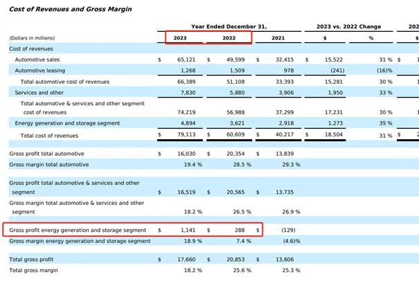 2023年特斯拉能源发电与存储业务的毛利润达到11.41亿美元,几乎是上一年(2.88亿美元)的四倍。该公司预计,储能装机量在未来也将持续增长,储能业务收入有望超过车辆业务。