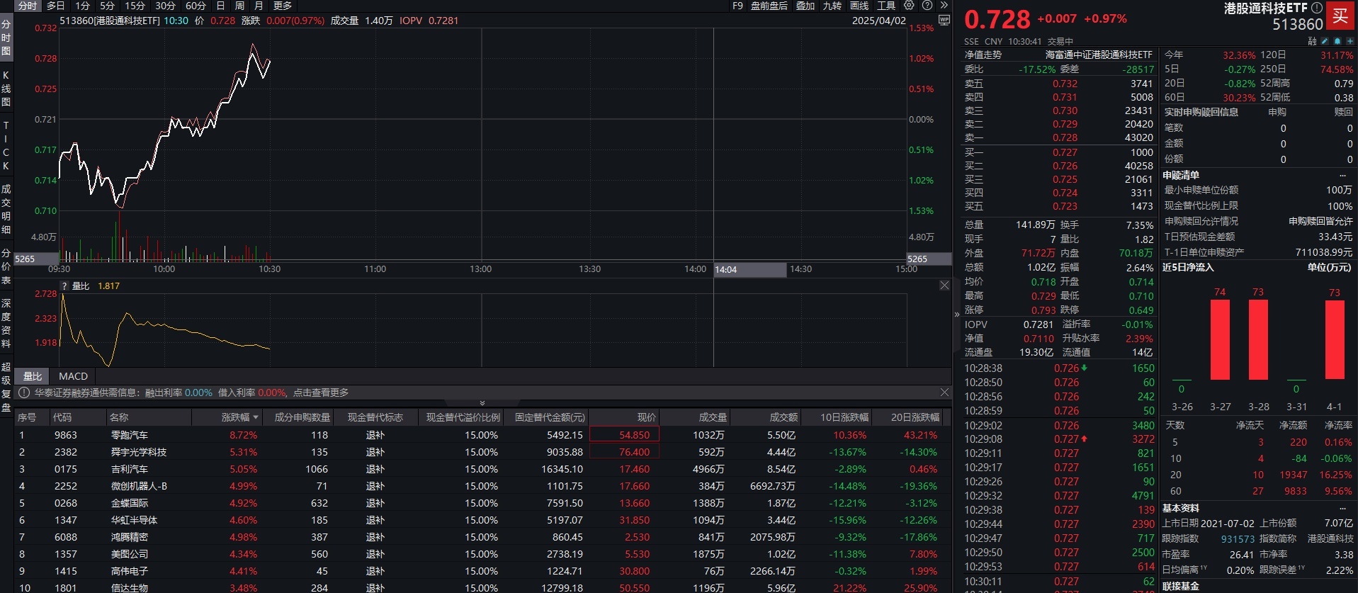 股票怎么可以加杠杆 3月科技、消费巨头获“爆买”,港股通科技ETF(513860)盘中涨超1%,零跑汽车涨超8%
